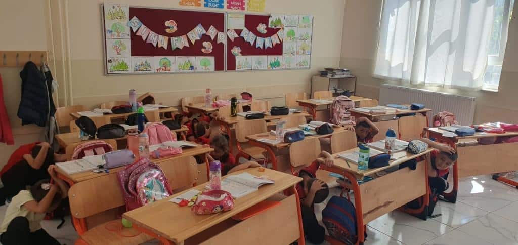 Afet planı kapsamında okulumuzda deprem tatbikatı yaptık. Öğrencilerimize deprem hakkında bilgiler verildi.Toplanma alanında toplanldı.